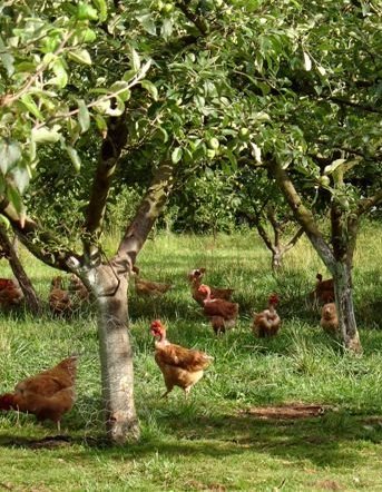 Pour notre exemple précis, nous sommes un élevage professionnel, mais à toute petite échelle dans une ferme en agro-foresterie. Notre activité avicole n’est pas centrée autour de la production d’œufs, mais de l’élevage de poules dans de grands espaces sous nos arbres fruitiers. Parallèlement, nous avons entre autres pour répondre à la demande de particuliers qui ont un petit budget, des petits lots de poules hybrides. Elles sont vendues et rejoignent leur nouveau poulailler familial entre l’âge de 5 et 7 mois.